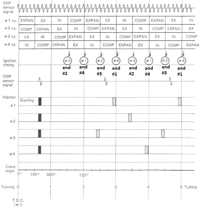 Hi, I am trying to run a 2001 GSXR600 engine using the Microsquirt controller. The engine has two VR sensors, one on an 8 tooth crank wheel and one on the cam with a single tooth. Both VR signals look good on the oscilloscope and in the trigger analyzer. How should I configure the dual spark settings? I have attached the oscilloscope trace, the trigger analyzer results and the timing diagram for the stock engine. The wiring was done so that spark s1&4 and sparks 2&3 fire together. Also the VR signal is shown as falling on the zero crossing on the stock diagram and is now rising on the zero crossing as shown by the oscilloscope trace. Any help with configuring the ignition settings would be very appreciated, anything that I have tried has not really worked...